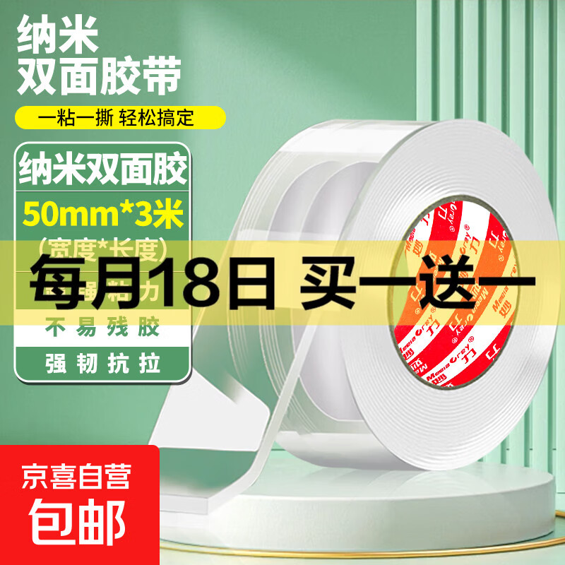 纳米双面胶带 高透明高粘性不易残胶 手工diy加固物品适用 透明纳米-宽50mm*3米(强粘)