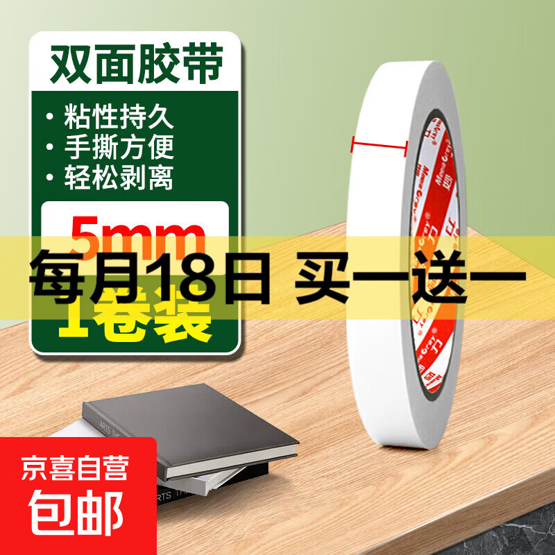高粘度易手撕强力双面胶超薄办公用胶带棉纸双面胶带学生手工专用固定纸胶条 双面胶,宽5mm*10y,1卷