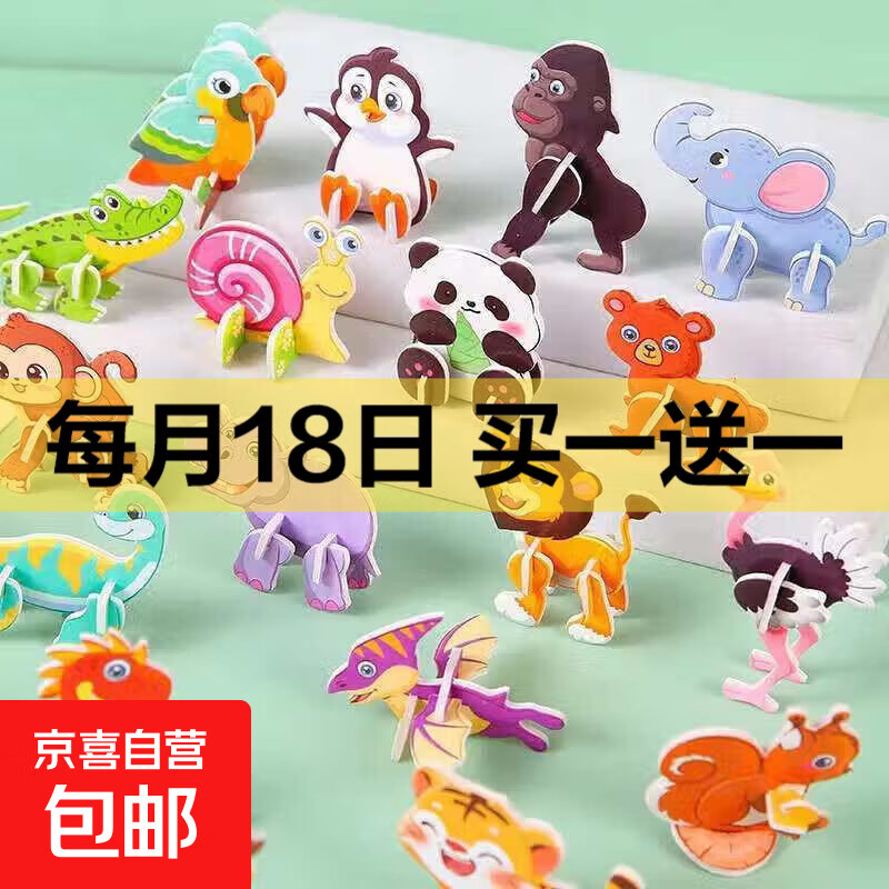 家居创意饰品纸质立体小拼图可爱卡通卡皮巴拉小恐龙造型 动物拼图 随机2套