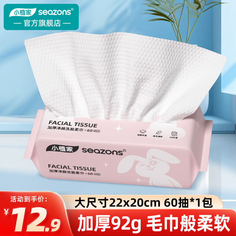 小植家一次性洗脸巾女棉柔巾加大加厚洁面巾吸水擦脸巾 厚款60抽净颜洗脸巾*1 加厚款