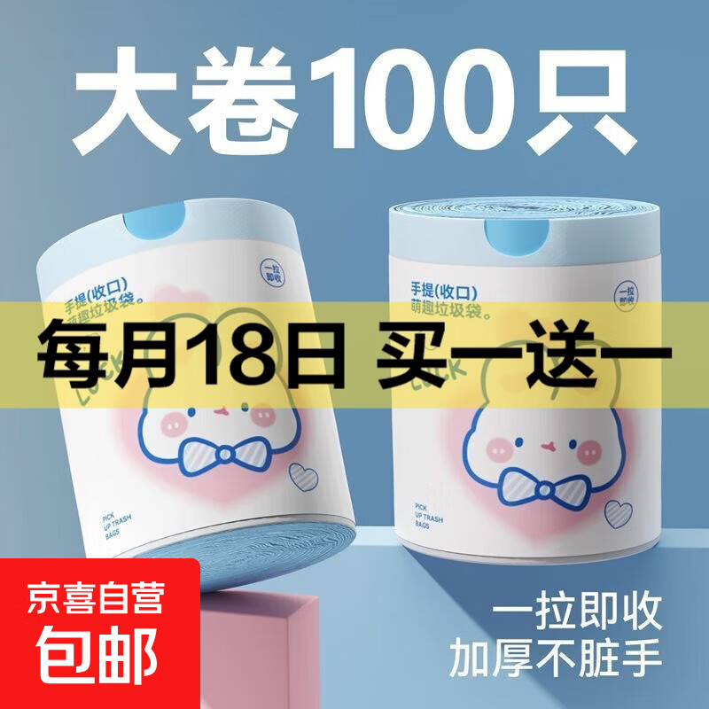 可爱卡通水具配件高颜值蓝心兔抽绳式加厚垃圾袋 蓝心兔垃圾袋 30个