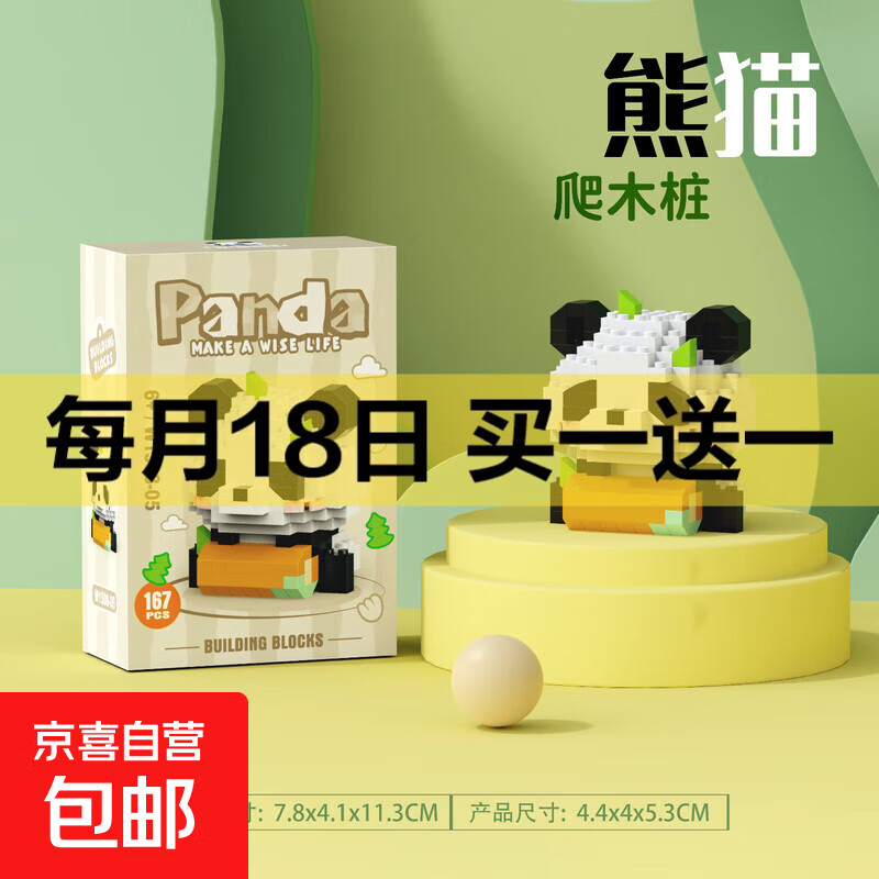 兼容积木中国大熊猫积木花花萌兰益智拼装儿童生日礼物玩具 W1508-05爬木桩167pcs