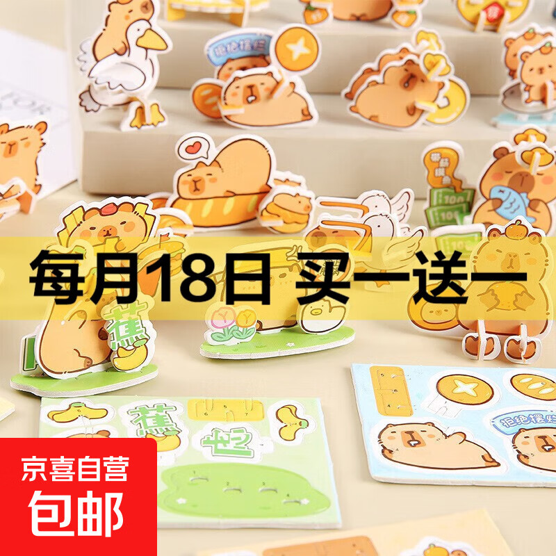 家居创意饰品纸质立体小拼图可爱卡通卡皮巴拉小恐龙造型 卡皮巴拉拼图 随机2套