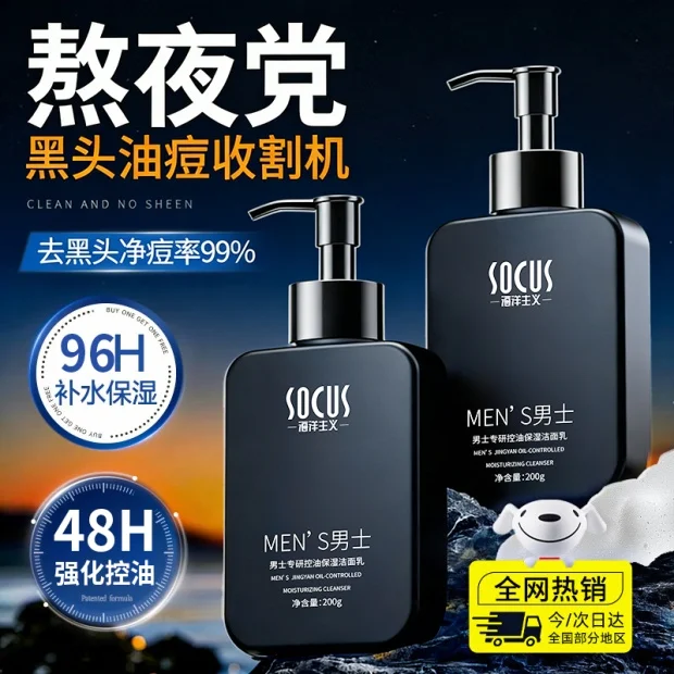 SOCUS洗面奶男士专用氨基酸控油祛痘黑头收缩毛孔洁面乳生日礼物送男友 【第二瓶半价】控油保湿洗面奶 200g *2瓶