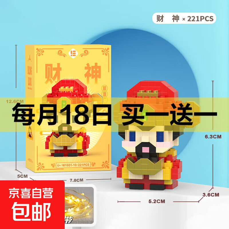 兼容积木中国大熊猫积木花花萌兰益智拼装儿童生日礼物玩具 【送灯带】 W1601-10财神