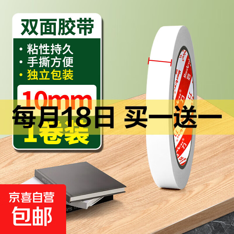高粘度易手撕强力双面胶超薄办公用胶带棉纸双面胶带学生手工专用固定纸胶条 双面胶,宽10mm*10y,1卷