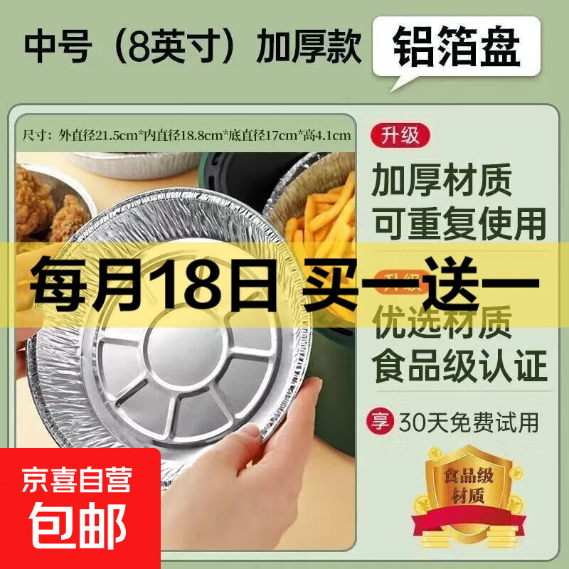 空气炸锅锡纸盒锡纸纸油纸烤盘油纸烤盘吸油纸烘焙纸硅油纸垫纸 免锅护洗超厚8英寸直径21.5CM 50只装