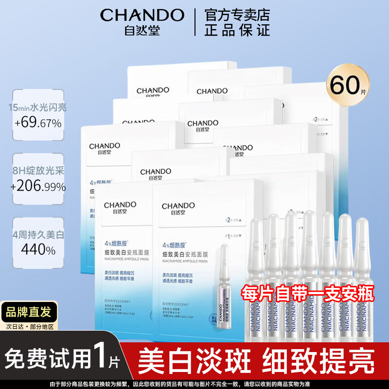 自然堂(CHANDO)安瓶面膜 烟酰胺补水保湿美白弹嫩细致舒缓肌肤面膜套装护肤品女 安瓶面膜60片