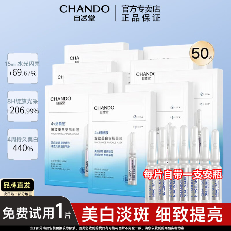 自然堂(CHANDO)安瓶面膜 烟酰胺补水保湿美白弹嫩细致舒缓肌肤面膜套装护肤品女 安瓶面膜50片
