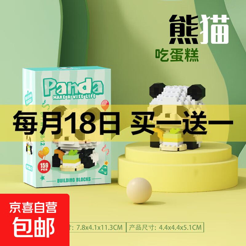 兼容积木中国大熊猫积木花花萌兰益智拼装儿童生日礼物玩具 W1508-12吃蛋糕159pcs