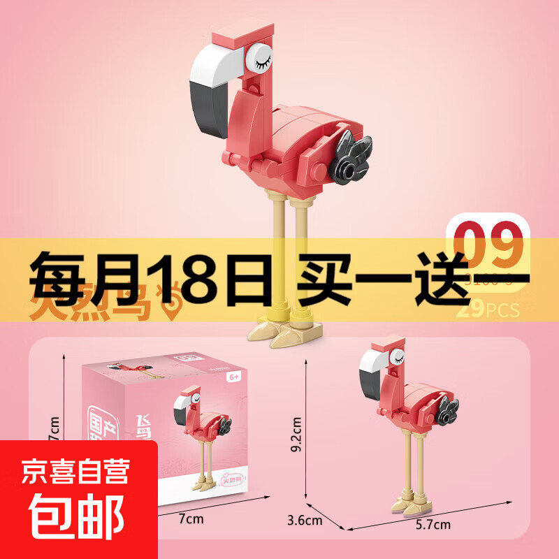 兼容积木中国大熊猫积木花花萌兰益智拼装儿童生日礼物玩具 9100-9 火烈鸟29pcs