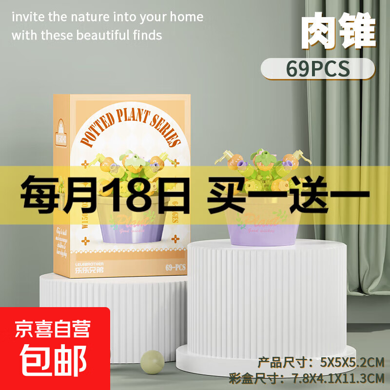 兼容积木中国大熊猫积木花花萌兰益智拼装儿童生日礼物玩具 W1503-03 肉锥69pcs