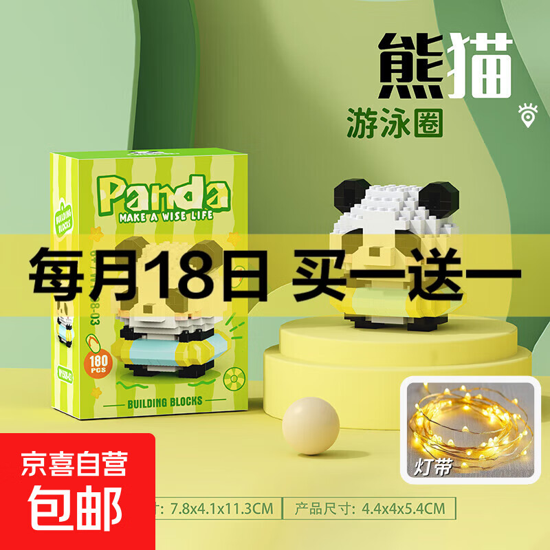 兼容积木中国大熊猫积木花花萌兰益智拼装儿童生日礼物玩具 W1508-03游泳圈【送灯带】