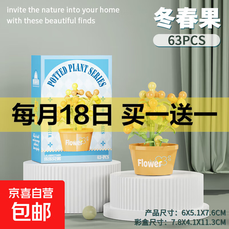 兼容积木中国大熊猫积木花花萌兰益智拼装儿童生日礼物玩具 W1504-10 冬春果63pcs