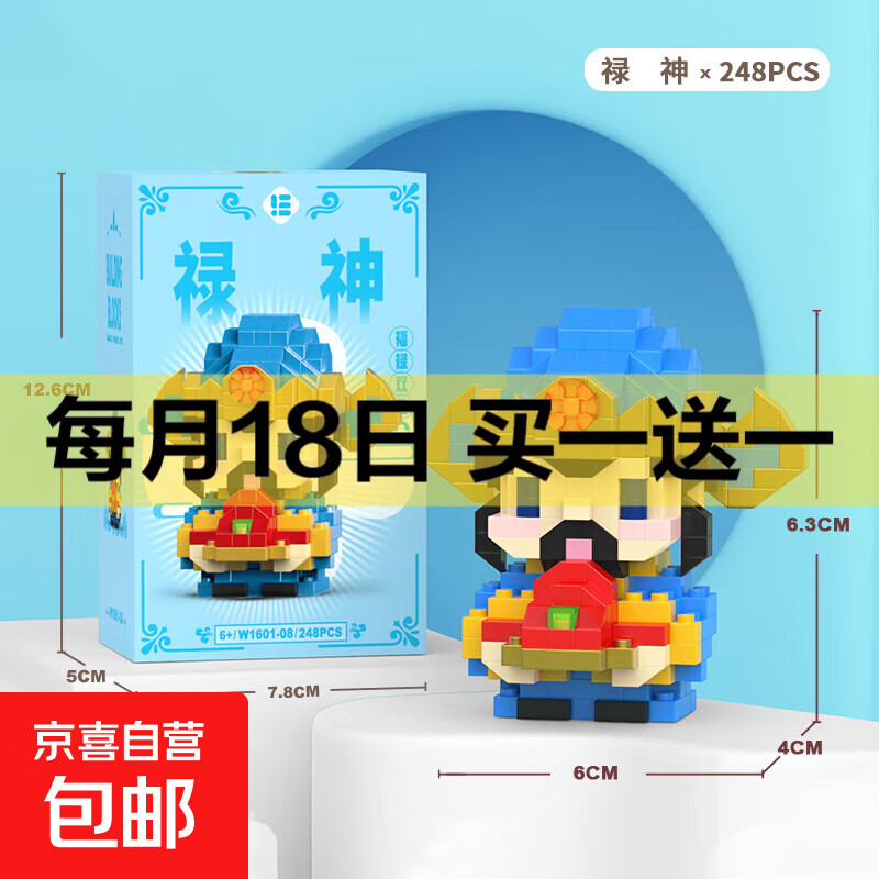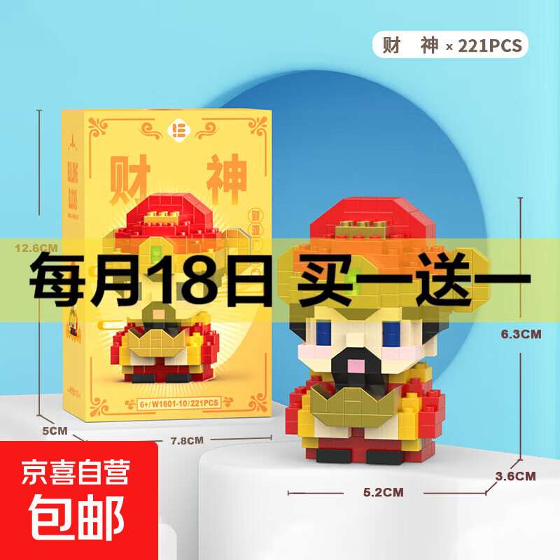 兼容积木中国大熊猫积木花花萌兰益智拼装儿童生日礼物玩具 W1601-10 财神221pcs