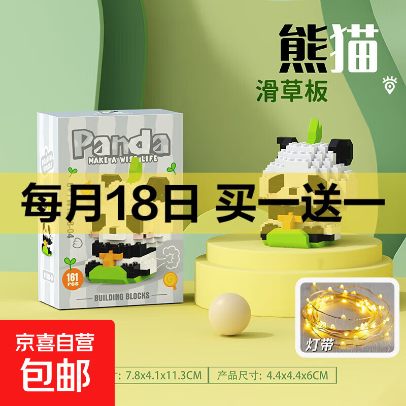 兼容积木中国大熊猫积木花花萌兰益智拼装儿童生日礼物玩具 W1508-04滑草板【送灯带】