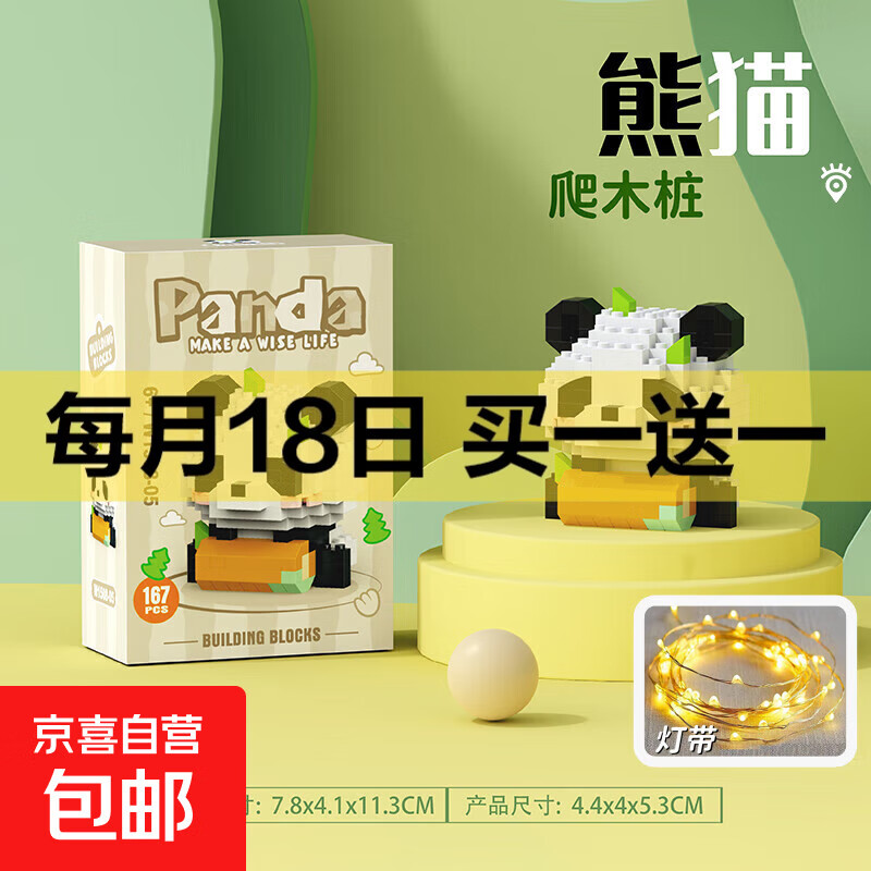 兼容积木中国大熊猫积木花花萌兰益智拼装儿童生日礼物玩具 W1508-05爬木桩【送灯带】
