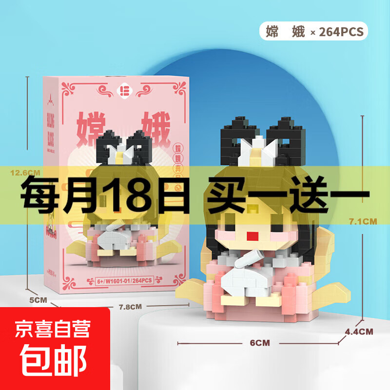 兼容积木中国大熊猫积木花花萌兰益智拼装儿童生日礼物玩具 W1601-01 嫦娥264pcs
