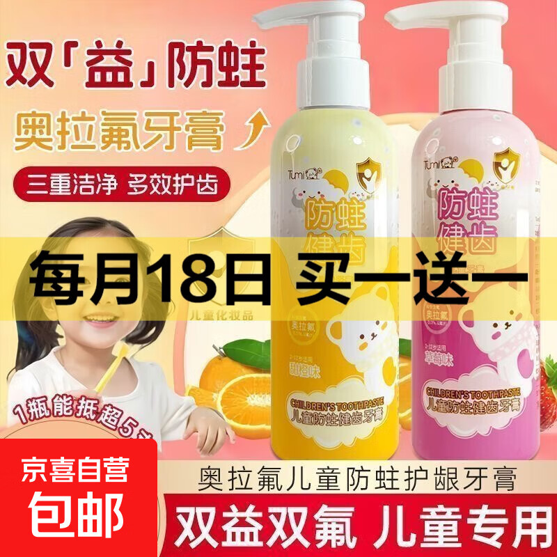 奥拉氟防蛀健齿牙膏180g含氟防蛀牙健齿草莓甜橙水果味适合3-12岁 草莓味180g*1瓶