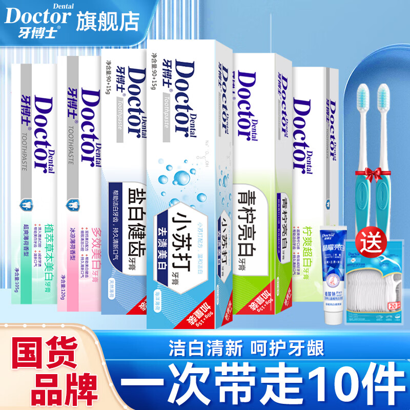 牙博士牙膏亮白减轻牙渍牙垢减少牙菌斑清新口气护牙龈家庭套装多效护理 【一次带走10件】洁白清新套装