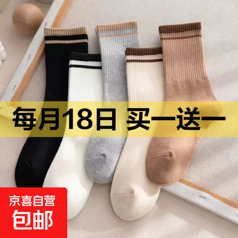 条纹袜子男中筒袜韩国潮ins百搭日系学院风男生春秋薄款中长筒袜 【颜色随机】3双