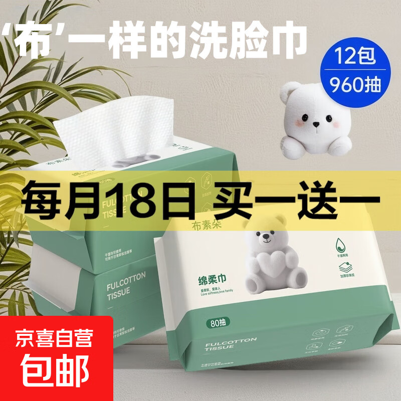 100%植物纤维一次性加厚洗脸巾擦脸巾洁面巾婴童洗护抽取式 80抽【可爱熊】 1包【促销款】