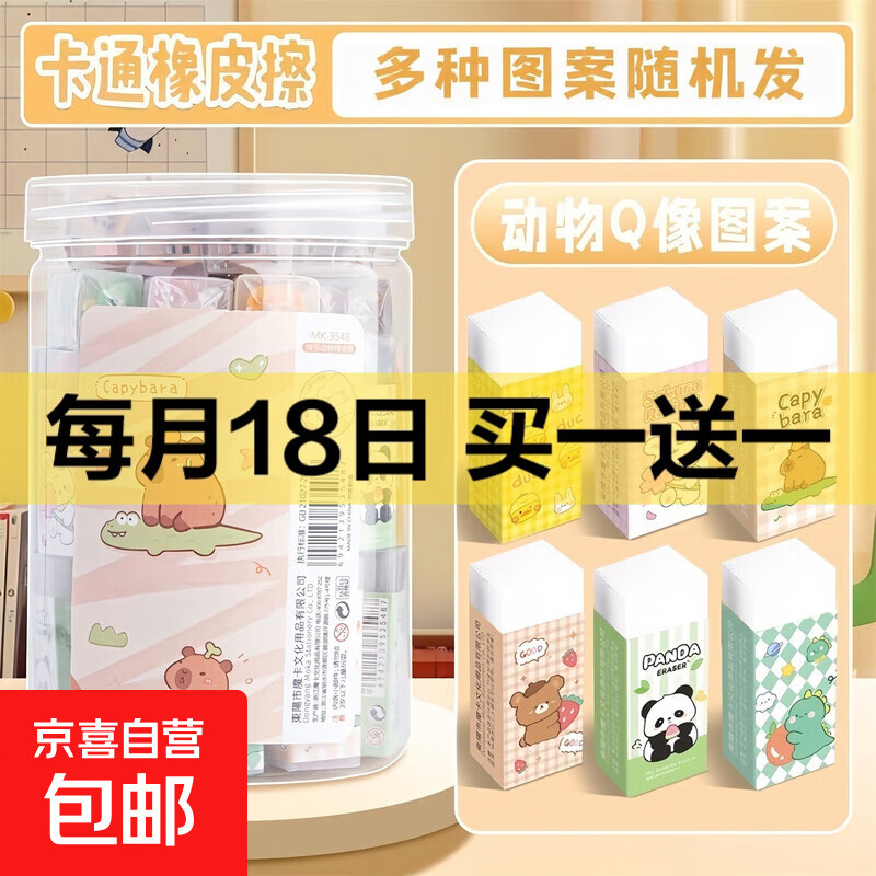 橡皮桶装橡皮擦儿童可爱小学生用干净无碎屑美术创意卡通可爱水果动物橡皮幼儿园 萌宠动物橡皮擦5个