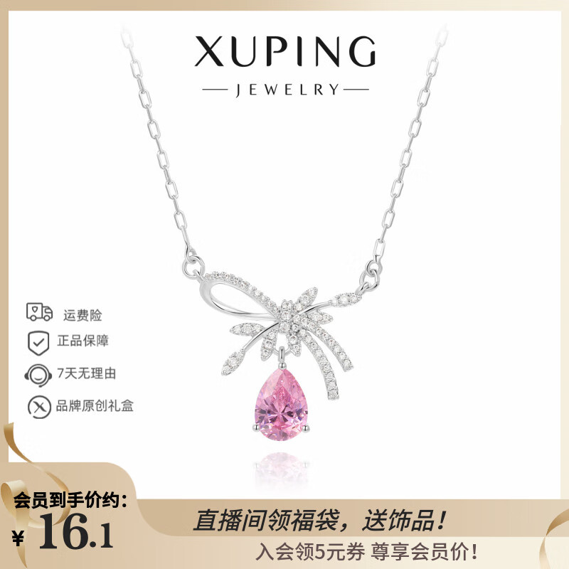 XUPING旭平首饰花束结飘带 女生锁骨项链日常百搭通勤送生日礼物X001152236 粉色 约40+5cm
