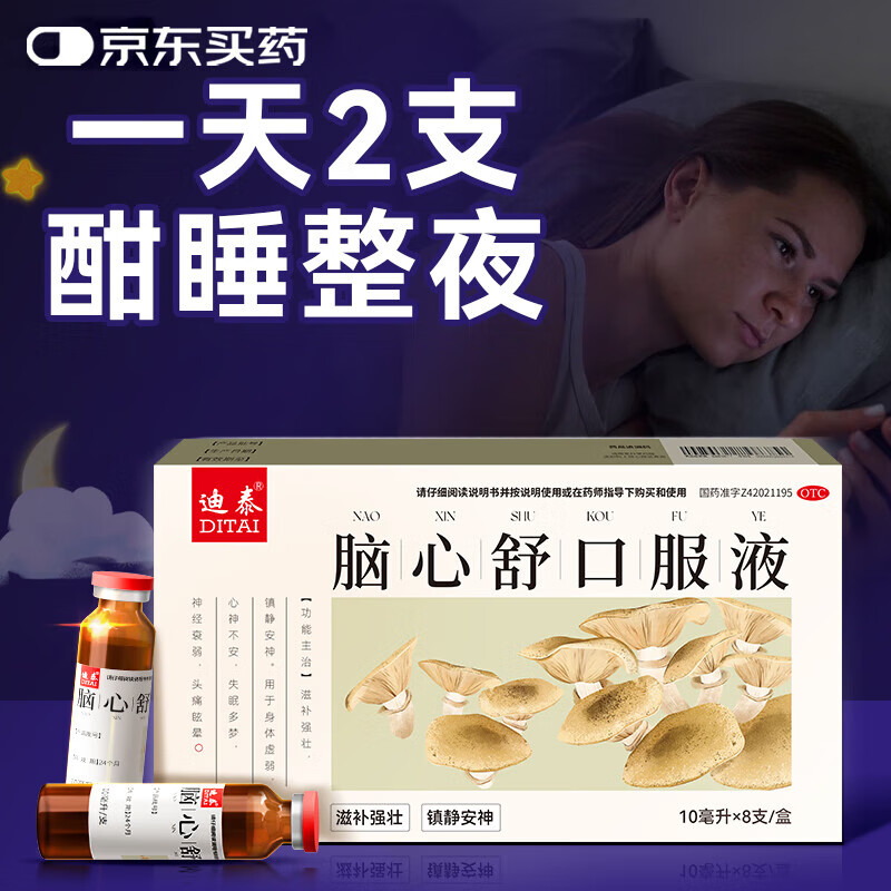 迪泰 脑心舒口服液10ml*8支 安神补脑助眠失眠多梦神经衰弱头痛头晕镇静改善睡眠药身体虚弱心神不安