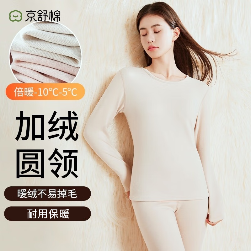 京舒棉京东自营·暖·女士秋冬轻盈柔软保暖套装加绒圆领套装 肤 XL