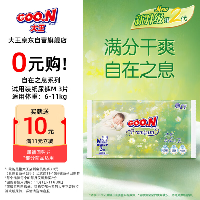大王(GOO.N)自在之息纸尿裤M3片(6-11kg) 夏季轻薄婴儿尿不湿体验装