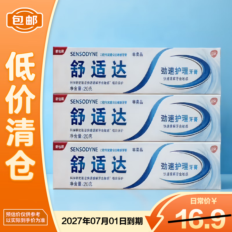 舒适达劲速护理牙膏20g*3盒 60s快速抗敏 缓解敏感抗敏防蛀【临期清仓】