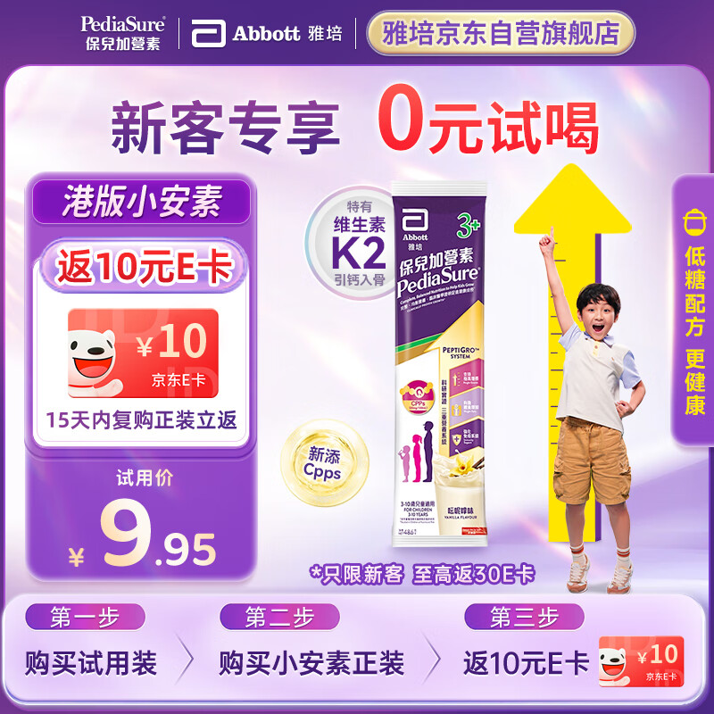 雅培小安素3+保儿加营素 儿童成长奶粉 非卖品试用装 香草味48.6g