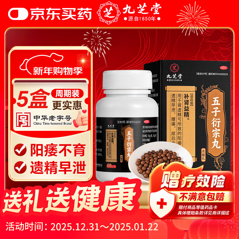 九芝堂 五子衍宗丸 60g/盒 补肾益精。肾虚精亏所致的阳痿不育、遗精早泄腰痛、男科用药