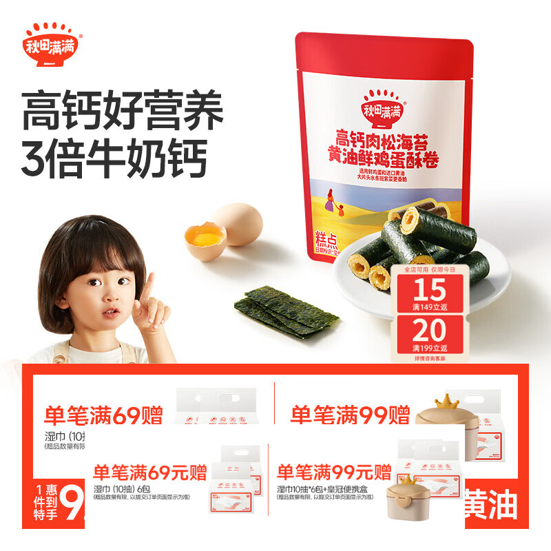 秋田满满高钙肉松海苔黄油鲜鸡蛋酥卷36g休闲零食点心