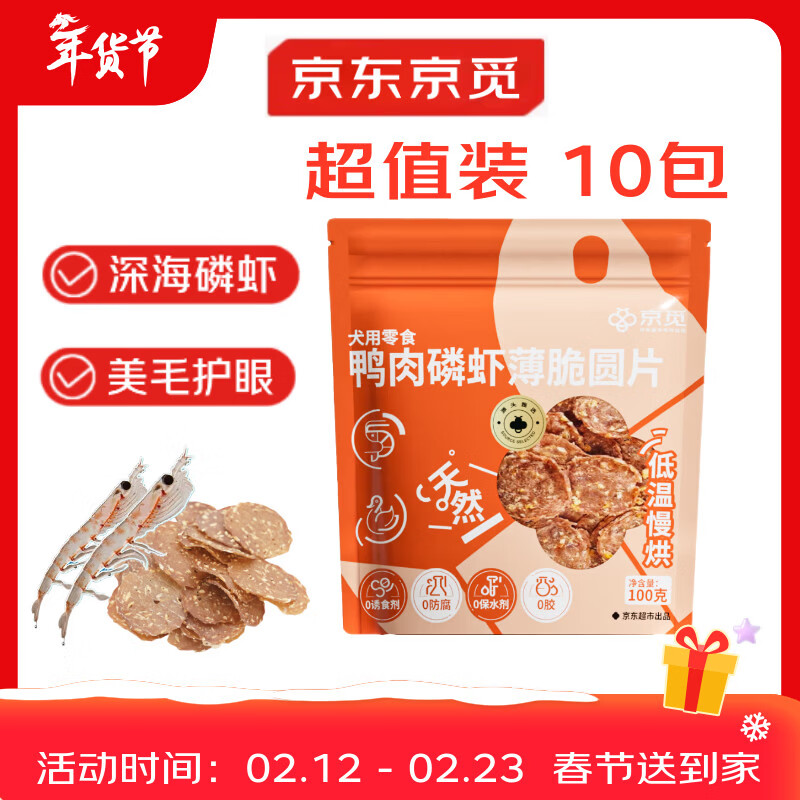 京觅磷虾鸭肉片磨牙棒鸭肉狗狗零食训练奖励原料透明清火消泪痕100g