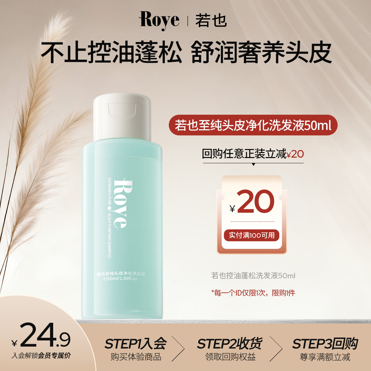 roye若也茉莉花水洗发水去屑控油敏感无硅油洗发液温和舒缓头皮50ml