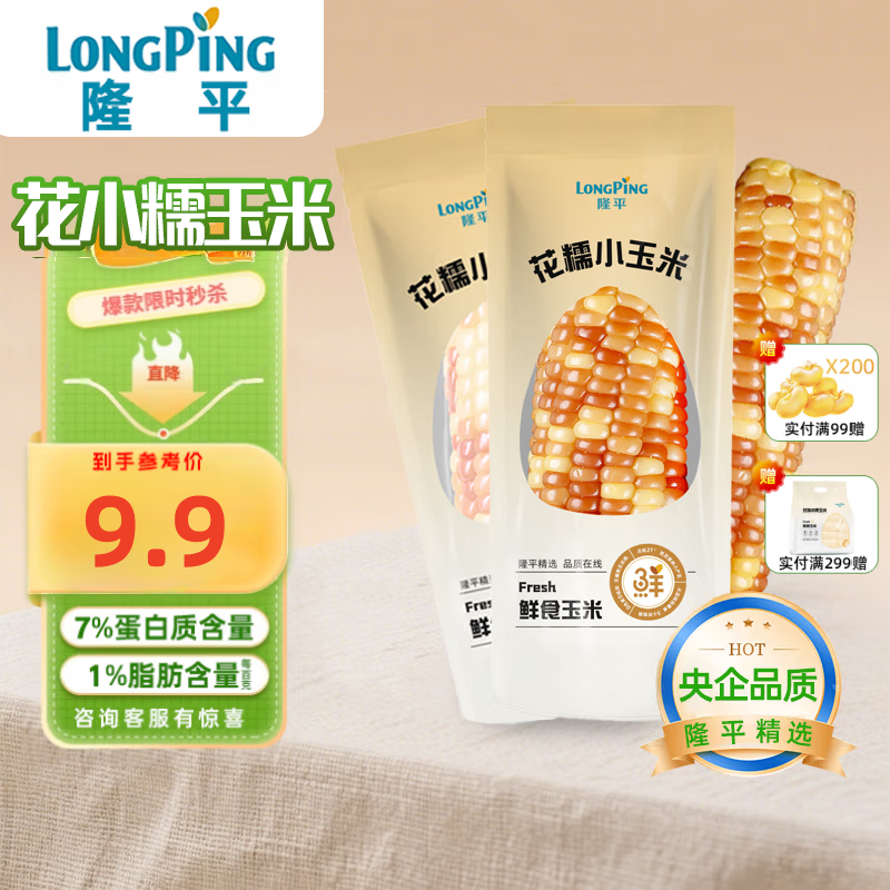 隆平 花糯小玉米2棒 非转基因西双版纳真空包装玉米棒 低脂早餐