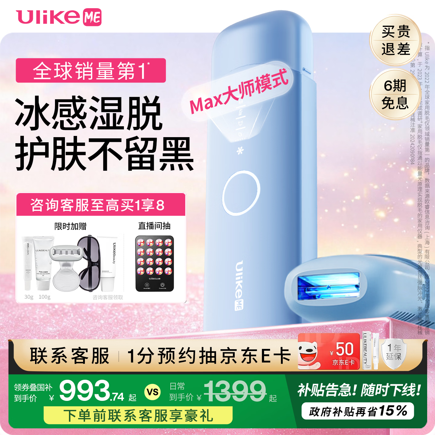 UlikeME【湿脱不加价】国家补贴蓝宝石冰点脱毛仪去小胡子刮毛刀全身脱毛器大学生送男女友生日礼物