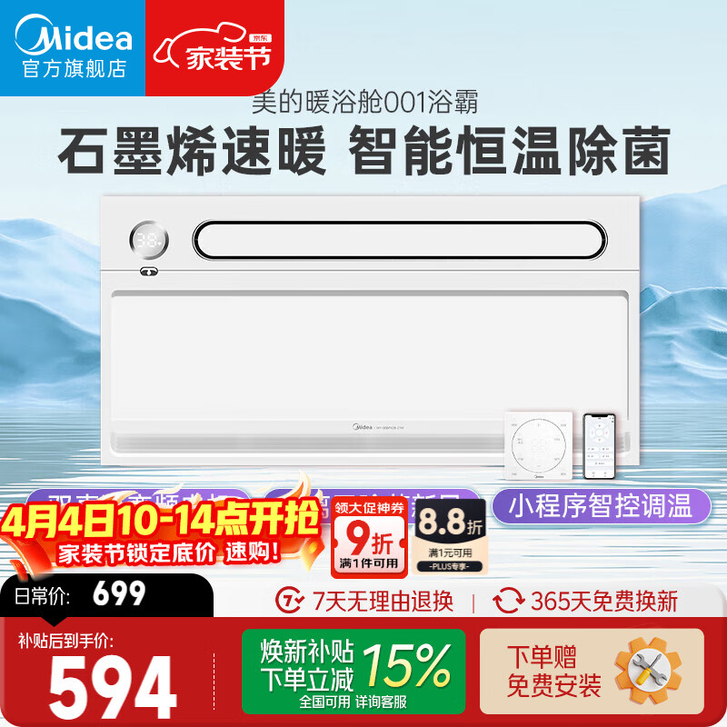 美的(Midea)风暖浴霸暖浴舱系列石墨烯速暖暖风照明排气一体001
