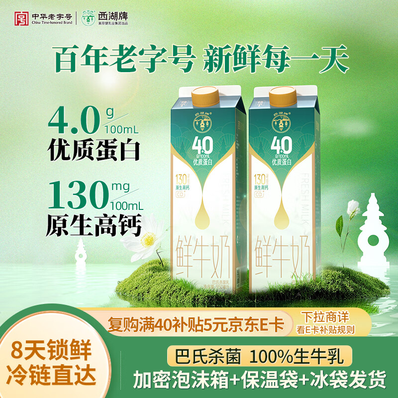 西湖牌低温鲜牛奶950ml*2 巴氏杀菌4.0优质蛋白纯牛奶乳品 冷藏源头直发