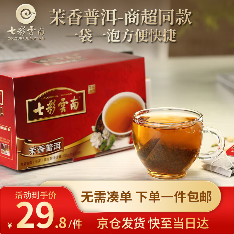 七彩云南茶叶 普洱茶 生茶 茉香袋泡茶100g/50袋 线下同款
