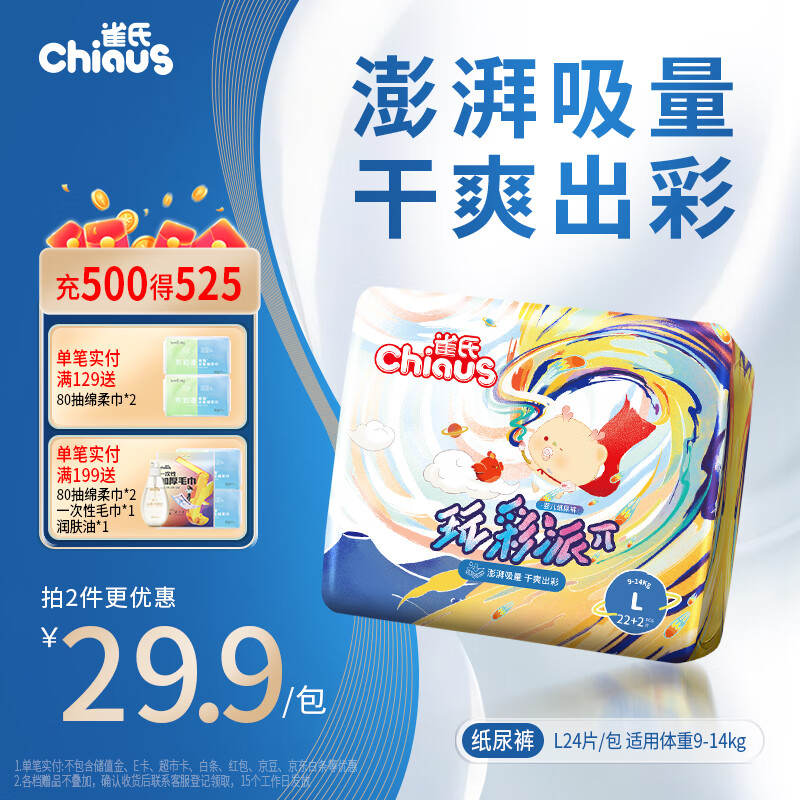雀氏【干爽透气】玩彩派纸尿裤L24片婴儿尿裤尿不湿