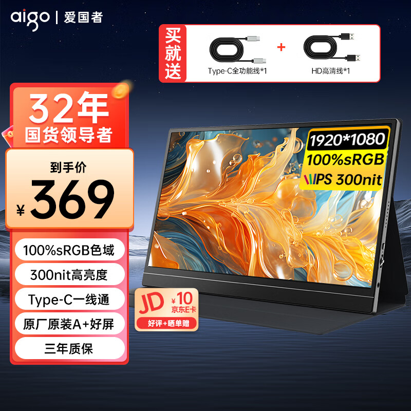 爱国者aigo15.6英寸便携显示器扩展显示屏电脑显示器手机笔记本 PS4/5 副屏Type-C一线通