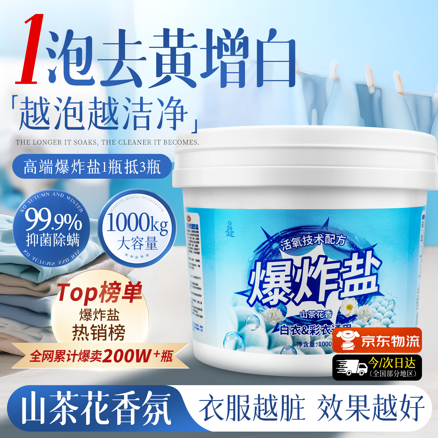 倍膳健山茶花爆炸盐彩漂漂白剂白色校服净儿童衣物去黄除霉去油渍1kg