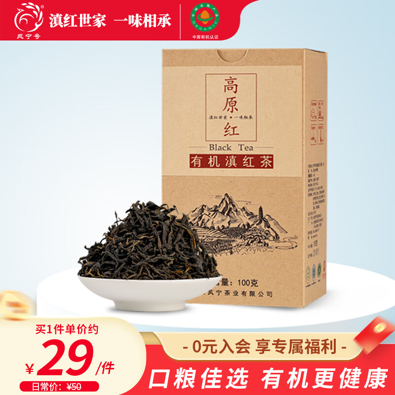 凤宁号红茶有机滇红工夫茶高原红凤庆滇红一级100g盒装茶叶口粮茶自己喝