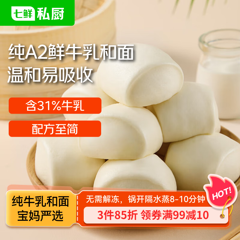 七鲜私厨 A2牛乳馒头800g(24只)鲜牛乳和面儿童早餐补给蛋白牛奶