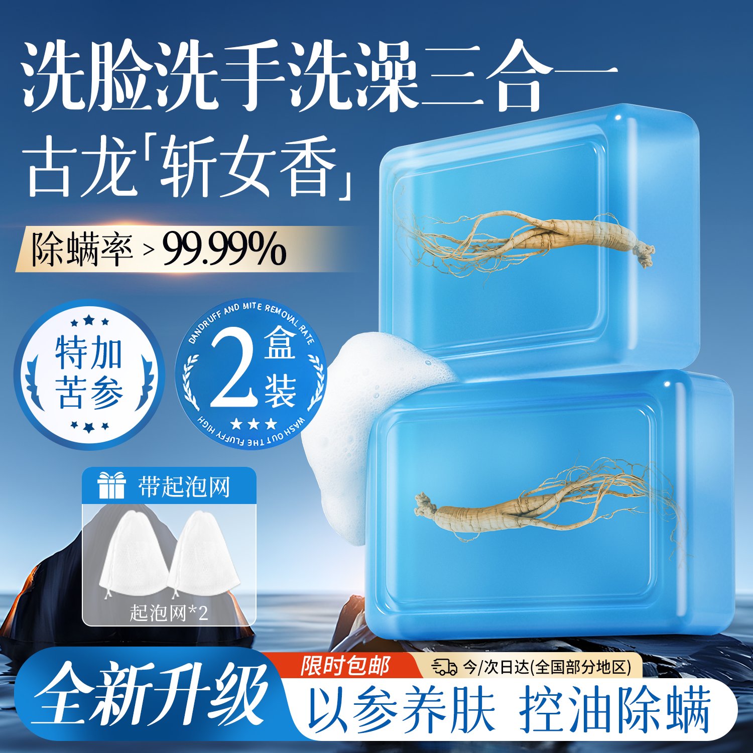 娅洛思男士苦参古龙香水皂除螨高级手工皂留香洗脸洗手洗澡三合一*2盒装