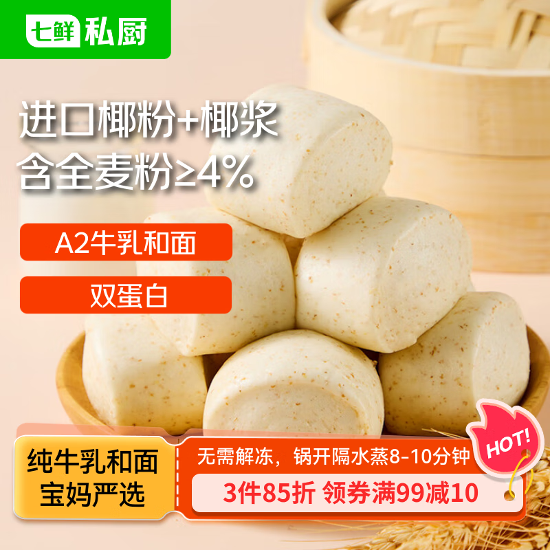 七鲜私厨 A2牛乳椰粉全麦馒头800g(24只)五谷丰登儿童早餐杂粮植物基