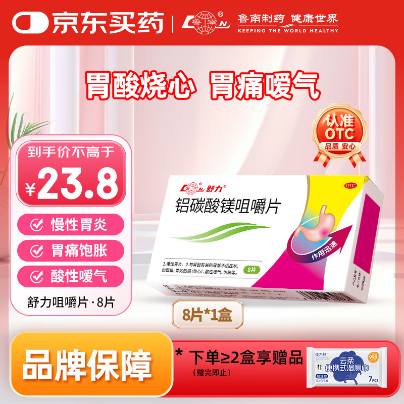 鲁南 铝碳酸镁咀嚼片 0.5g*8片 慢性胃炎 胃痛 胃灼热感 烧心